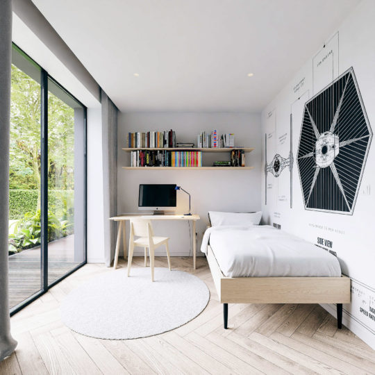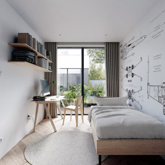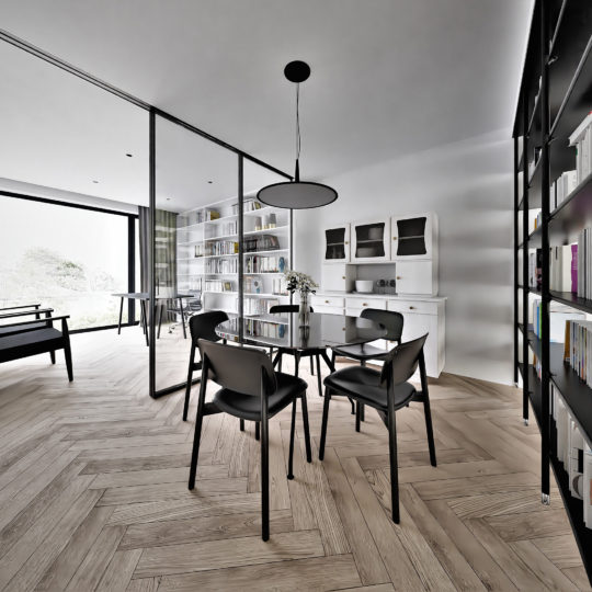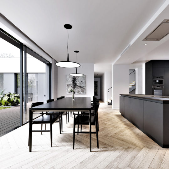 The space designed for a young family, full of optimism and openness to the world, tries to respond to the needs of tranquility, intimacy, but also energy and motivation to face new challenges. The task was to rebuild and adapt the interior to the diverse needs of each of the people spending their time in this place. The building is located in a green and quiet area and the intervention in its structure was aimed at preserving the values of its surroundings. Ascetic and calm means of expression, natural light and contact with nature were our priorities.