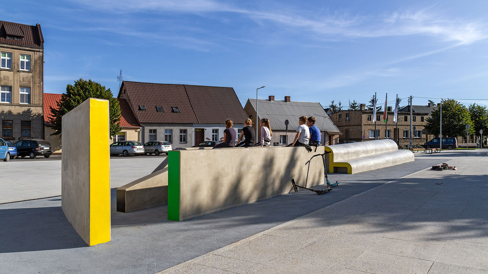 The realised market of the New Town in Wieleń is the first part of the city revitalization investment as well as the beginning of the social and spatial revitalization process, aimed at bringing about the revival of this part of the city, and in the future introducing accompanying functions in the surrounding buildings and creating attractive places for residents and visitors. The idea behind the creation of these places is the task of connecting people, ideas and mentality.