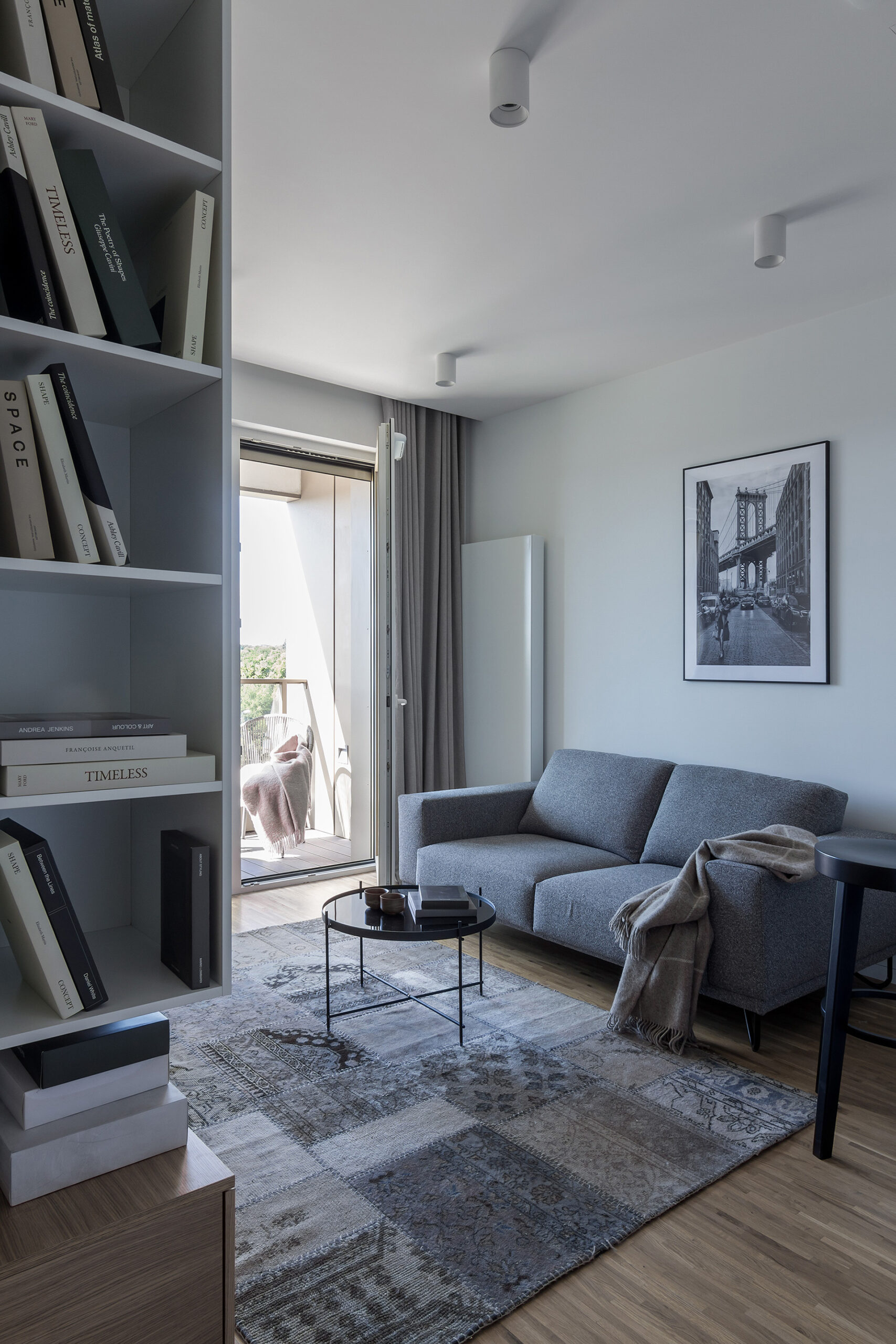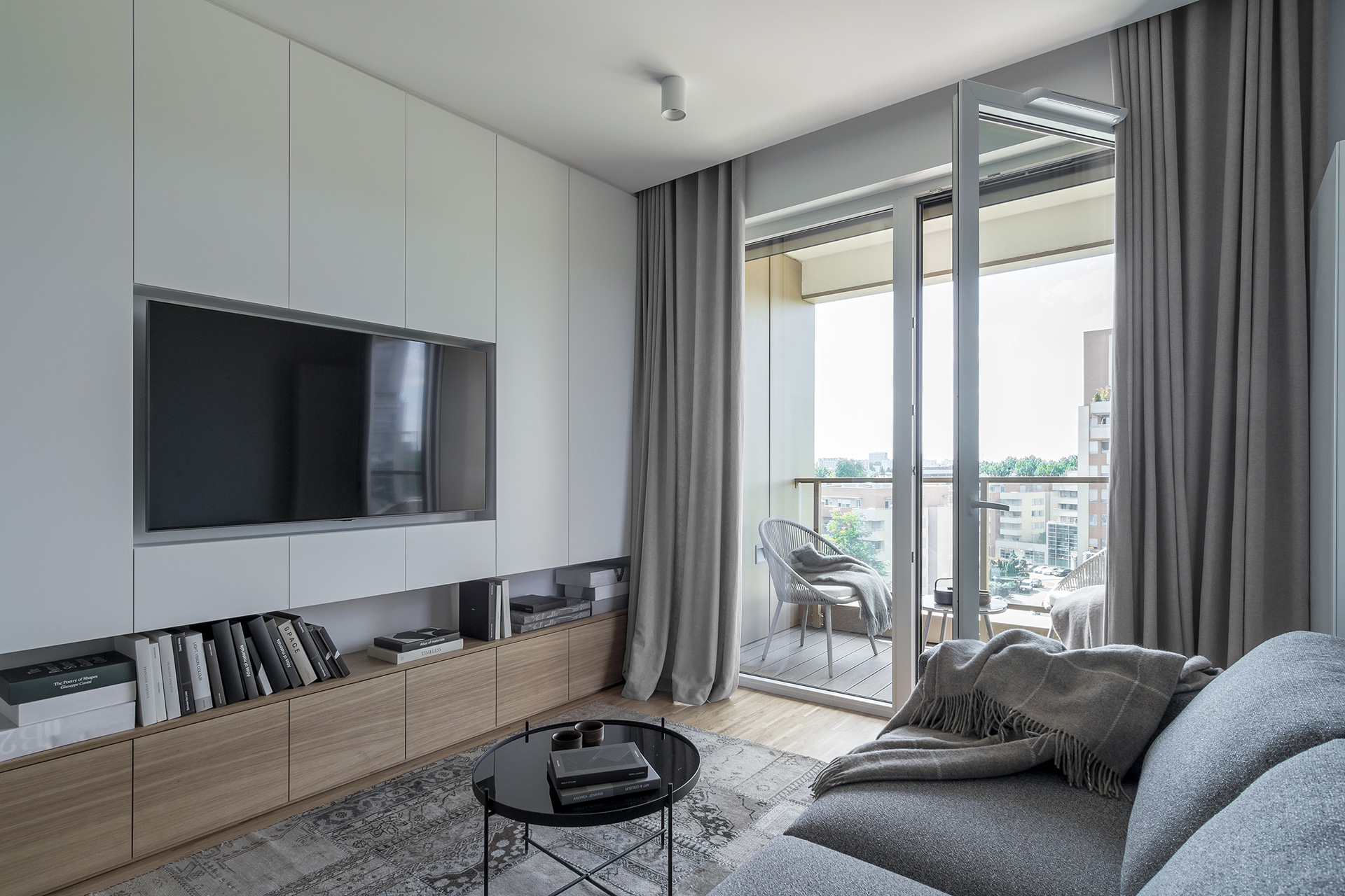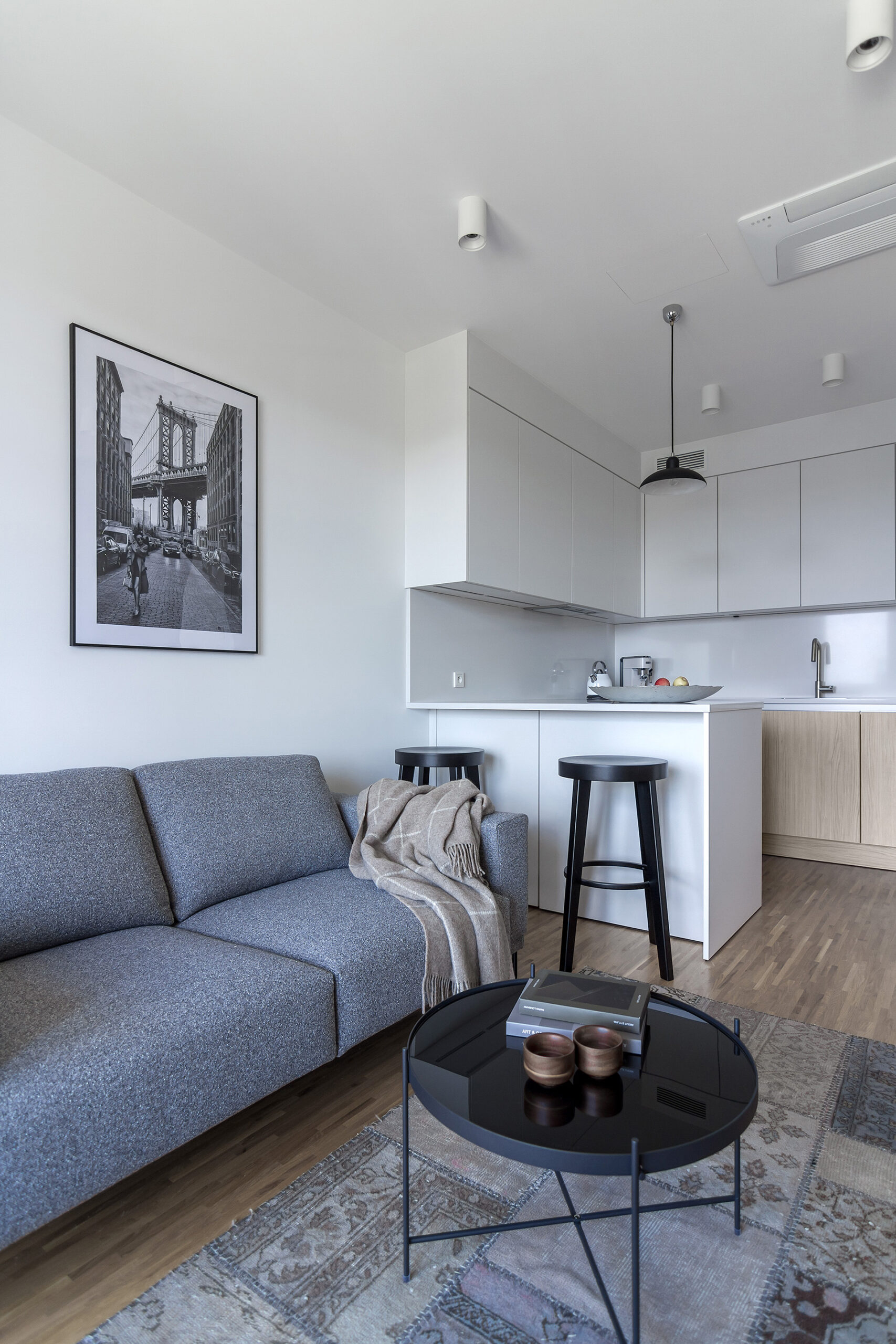 Apartament na wynajem Poznań – niewielki apartament położony w centrum Poznania. Architekt przyjął założenia prostej, czytelnej funkcji oraz ascetycznych rozwiązań estetycznych, dających poczucie komfortu i harmonii. Ogromnymi atutami prezentowanej realizacji są atrakcyjne widoki rozpościerające się z opisywanej lokalizacji. Z apartamentu można oglądać centrum Poznania oraz pobliskie sąsiedztwo Warty, a także wzgórze św. Wojciecha. Kolorystyka wnętrz i dobór jej materiałów współgra z dużą ilością światła dostającego się do środka. Ponieważ apartament na wynajem Poznań to specyficzne podejście do projektu, to biuro projektowe zaproponowało podział funkcjonalny lokalu, sposób wykończenia poszczególnych pomieszczeń, umeblowanie w sprzęty gotowe. Przygotowało też rysunki dla kuchni, zabudów indywidualnych oraz opracowania łazienkowe. Projekt wnętrz apartamentu uwzględniał także koordynację instalacji inteligentnego domu z integracją klimatyzacji oraz ogrzewania, a także nagłośnienia.