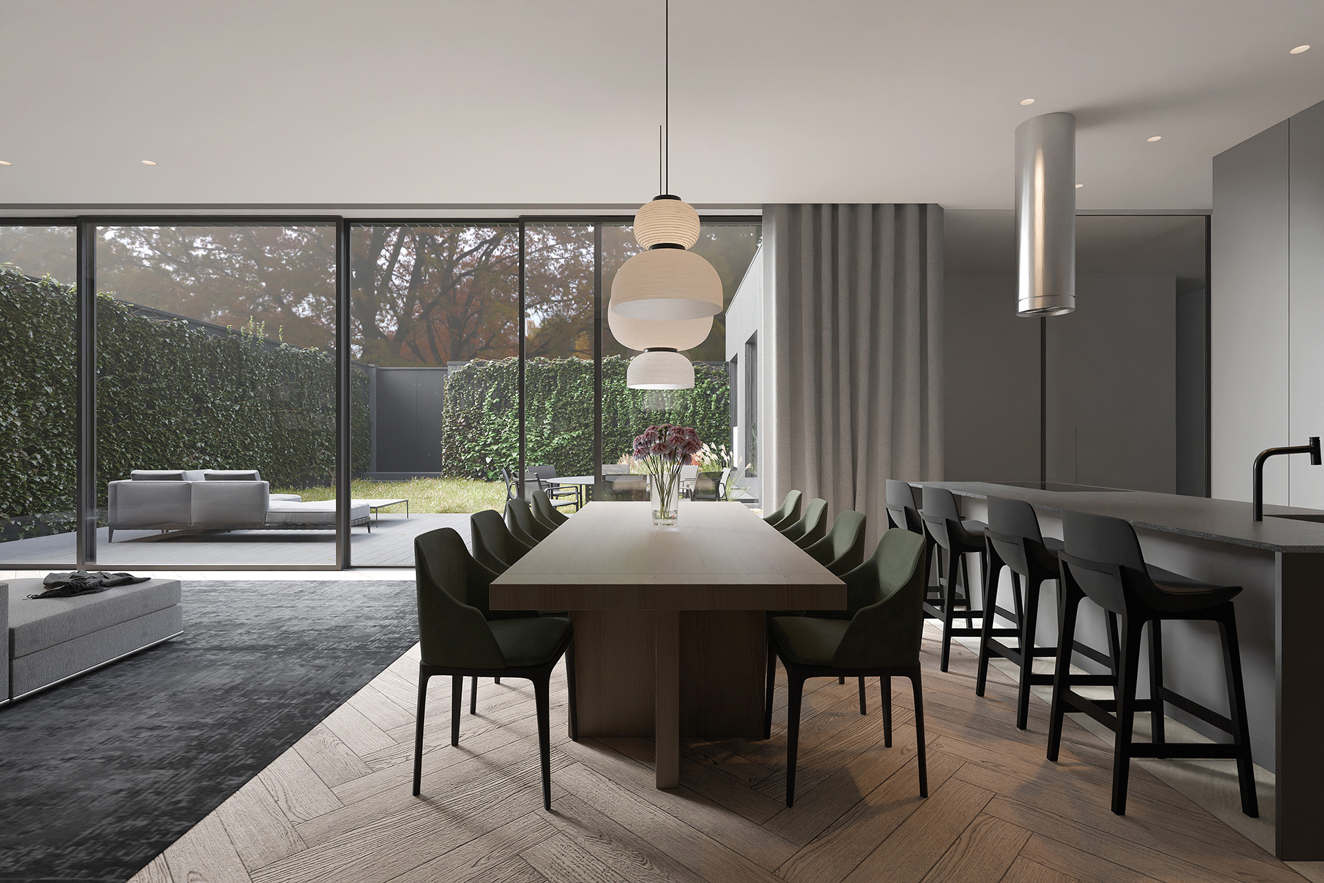 Architekci Poznań przedstawiają przebudowę domu zlokalizowanego na niewielkiej działce w centrum Poznania. W procesie projektowym skupiliśmy się na zapewnieniu optymalnego wykorzystania światła naturalnego wypełniającego przestrzenie mieszkalne oraz ogród w patio, który ze swojej niewielkiej przestrzeni przechodzi w naturalny sposób ścianami zielonymi do wnętrza domu. Dom Atrialny jest odpowiedzią na potrzebę azylu w miejscu kojącym zmysły, zapewniającym wyjątkowy luksus poprzez szytą na miarę funkcję, starannie dobrane materiały wykończeniowe oraz dopracowaną relację wnętrz z zewnętrzem. Architekci Poznań koordynowali współpracę z branżami, a projekty branżowe oraz każdy, najdrobniejszy szczegół projekt wnętrz jest tu dopracowany i przemyślany. Architekt domu był zaangażowany na każdym etapie jego powstawania, a klienci zapewnili sobie odpowiednio dużo czasu na konsultacje materiałowe. Kolorystyka wnętrz i dobór jej materiałów współgra z dużą ilością światła dostającego się do środka. Biuro projektowe zaproponowało aranżację domu, sposób wykończenia poszczególnych pomieszczeń, umeblowanie w sprzęty gotowe. Przygotowało też rysunki dla kuchni, zabudów indywidualnych oraz opracowania łazienkowe. Projekt wnętrz apartamentu uwzględniał także koordynację instalacji inteligentnego domu z integracją klimatyzacji oraz ogrzewania, a także nagłośnienia.