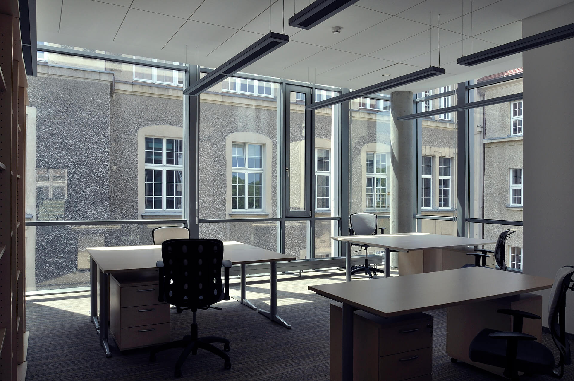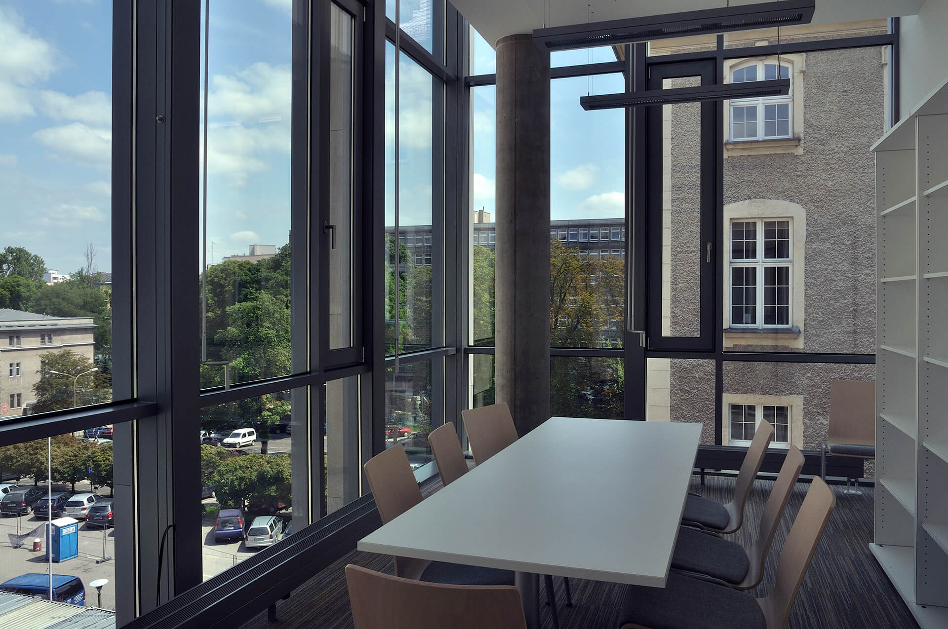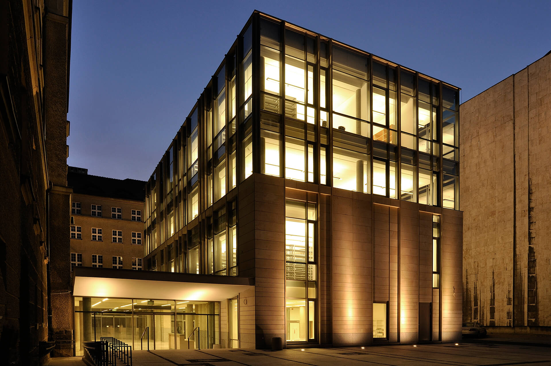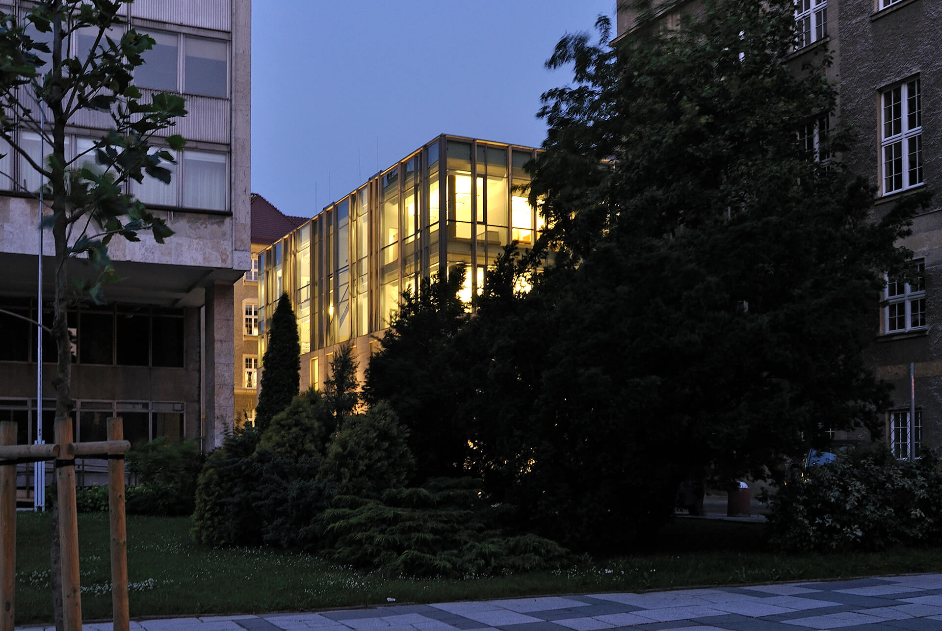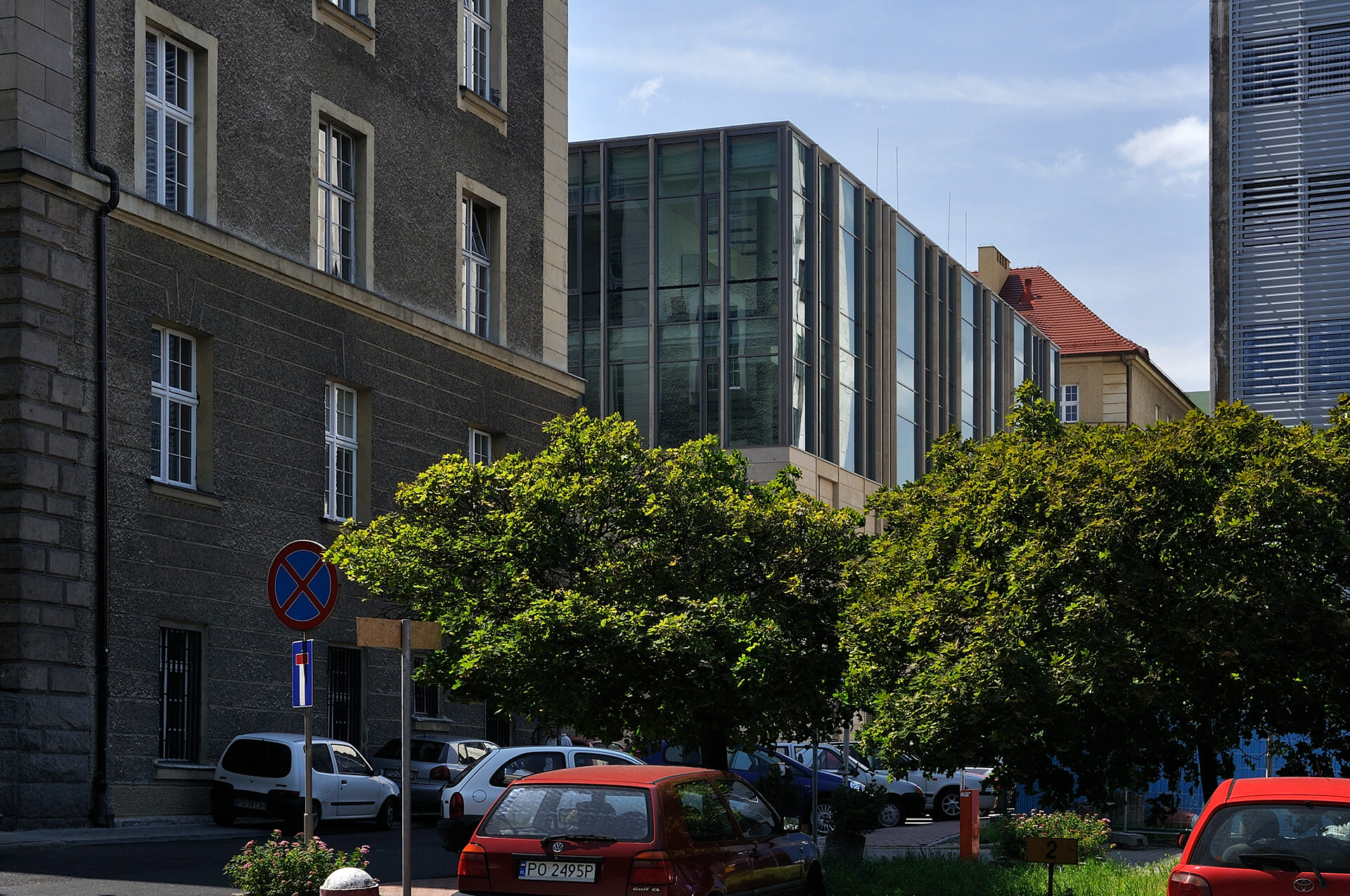 Projekt powstał w wyniku konkursu rozstrzygniętego we wrześniu 2005 roku. Główną ideą było pogodzenie sprzeczności wynikających z charakterystyki obiektu – szacunek do zastanego miejsca i jego historii oraz determinacja, aby zrealizować obiekt współcześnie funkcjonalny, powściągliwy w formie, z wyczuciem nawiązujący do otoczenia. Celem nadrzędnym były rozwiązania przyjazne dla studentów, ale także pogodzenie wymagań inwestora z zapisami warunków zabudowy – przy bardzo ograniczonej dopuszczalnej powierzchni zabudowy wymagano znacznej powierzchni użytkowej i rozbudowanego programu funkcjonalnego. Zaowocowało to układem wnętrza, który jest opracowany w sposób wykorzystujący do maksimum dostępną powierzchnię, dokładnie analizując wymagania przestrzenne użytkownika. Znaczne skomplikowanie projektu potęgowała dodatkowo sytuacja gruntowo – wodna, ponieważ budynek częściowo posadowiony był na dawnym pierścieniu obronnym Poznania – na murach obronnych i zasypanej fosie, a częściowo na podziemnym cieku, który został niejako przedzielony nową strukturą.