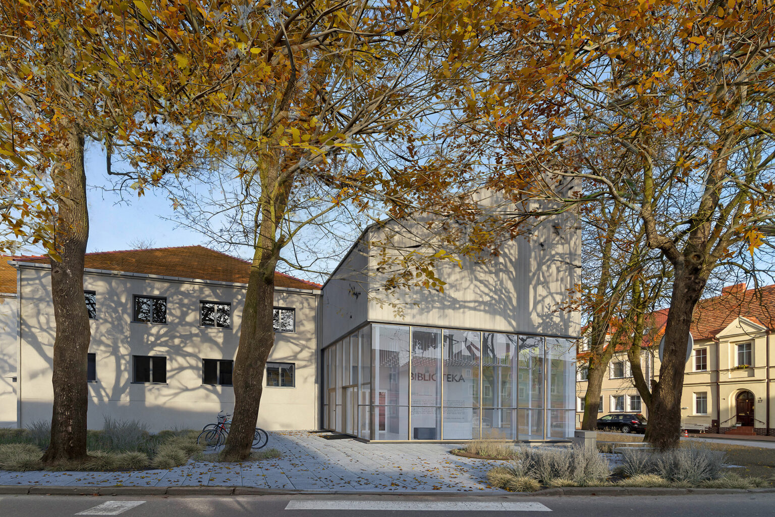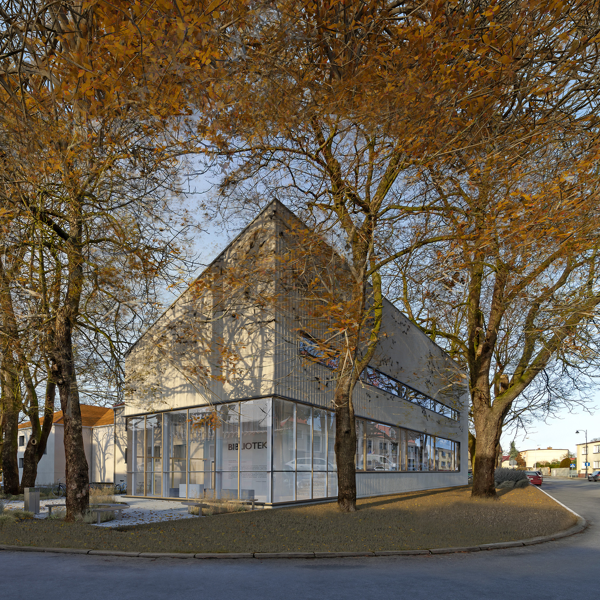 Projekt biblioteki przewiduje również utworzenie kameralnego skweru z małą architekturą, zlokalizowanego przed nowym, przeszklonym wejściem do biblioteki. Ta zielona przestrzeń stanie się miejscem spotkań i rekreacji dla mieszkańców Buku, a jednocześnie wzmocni integrację nowej części budynku z otoczeniem. Skwer będzie dostępny dla wszystkich, co dodatkowo podkreśli społeczny charakter całego przedsięwzięcia.