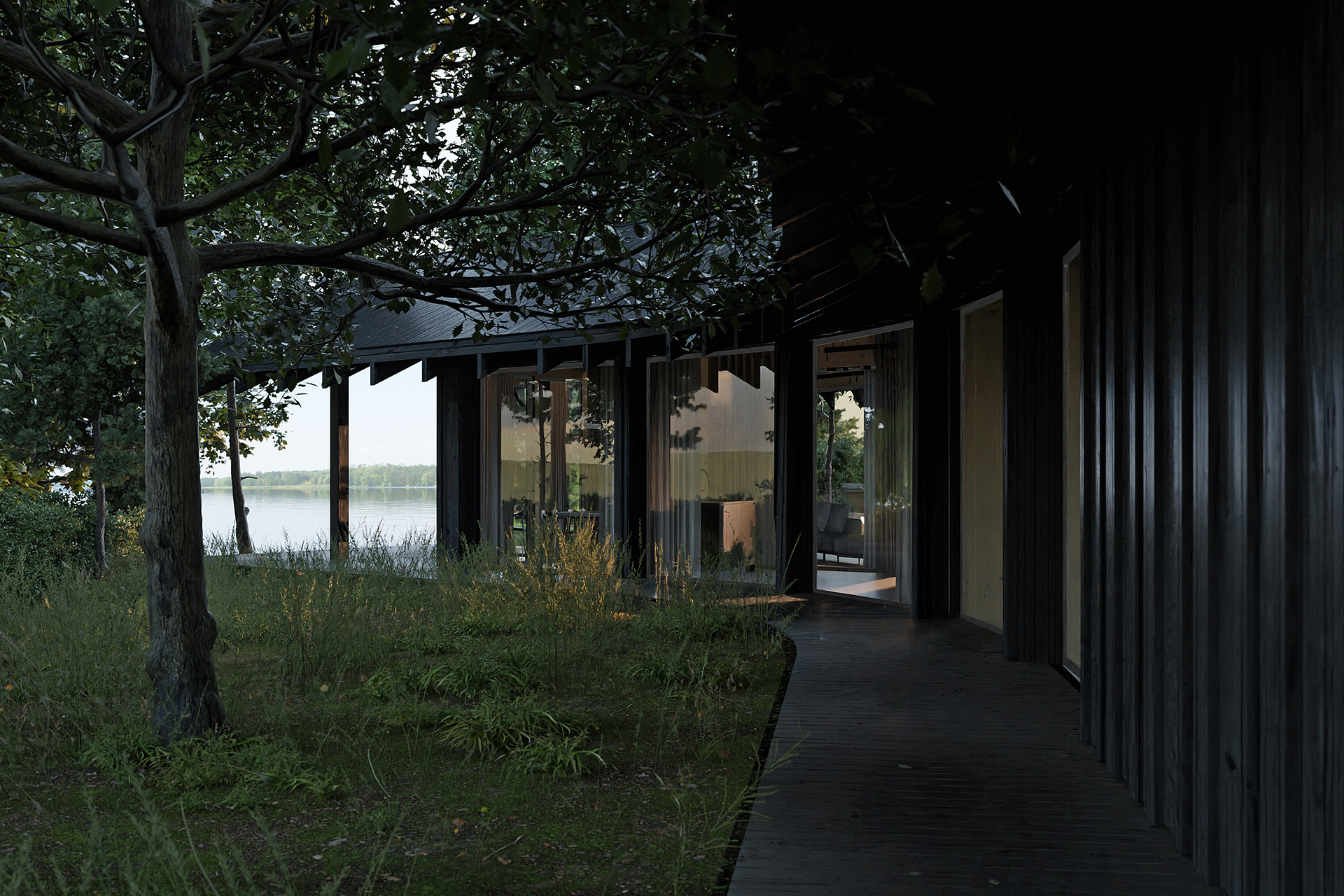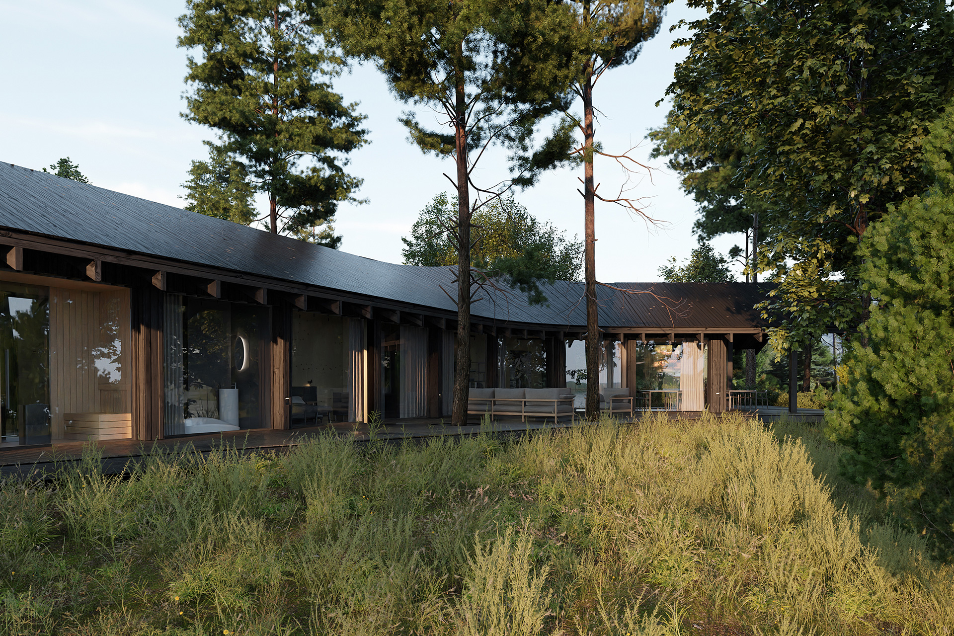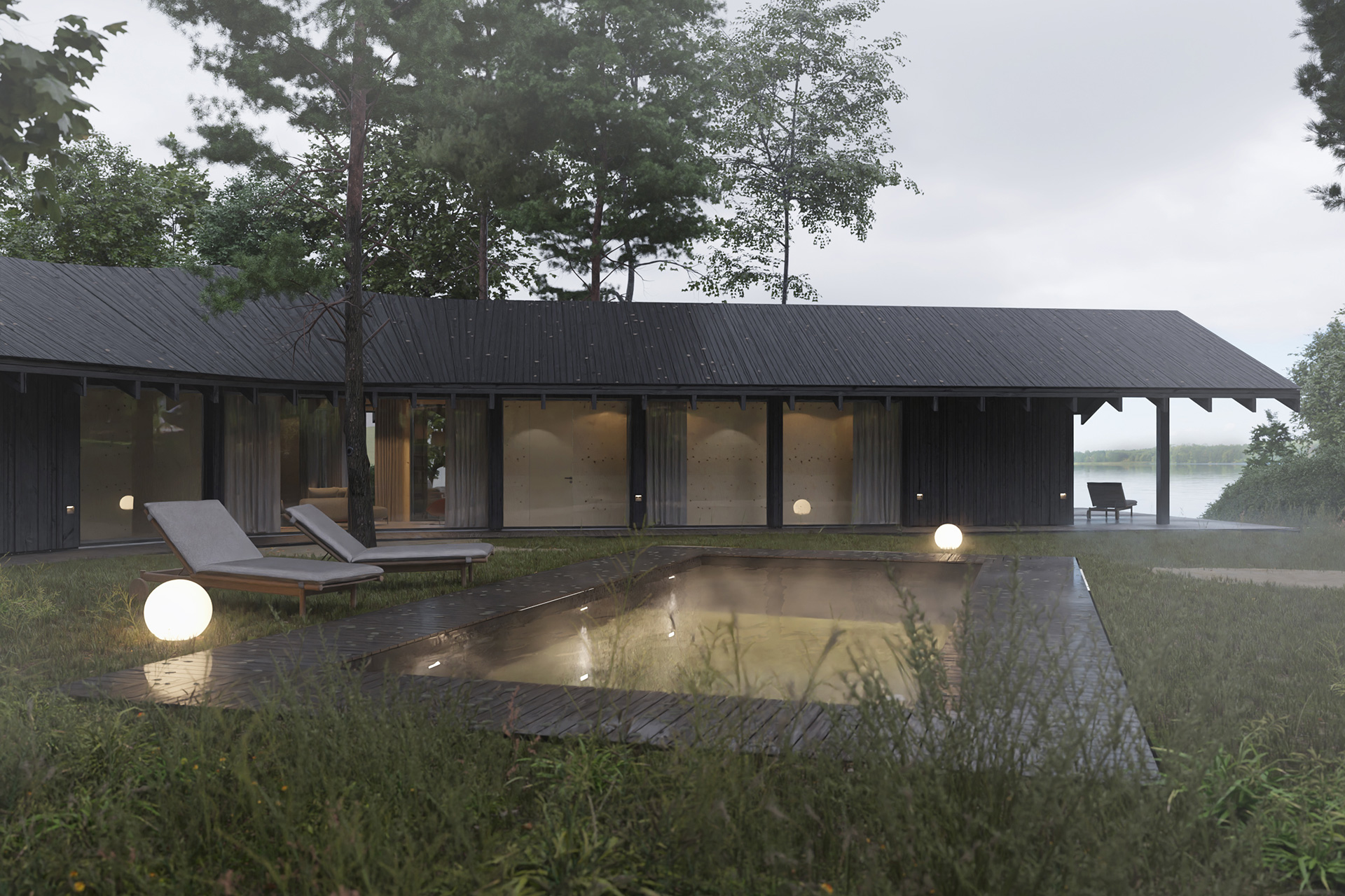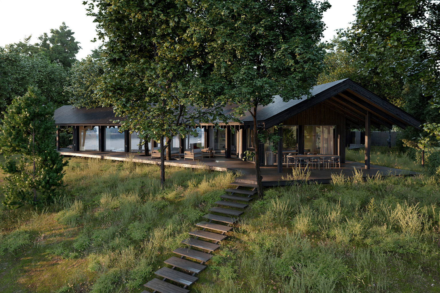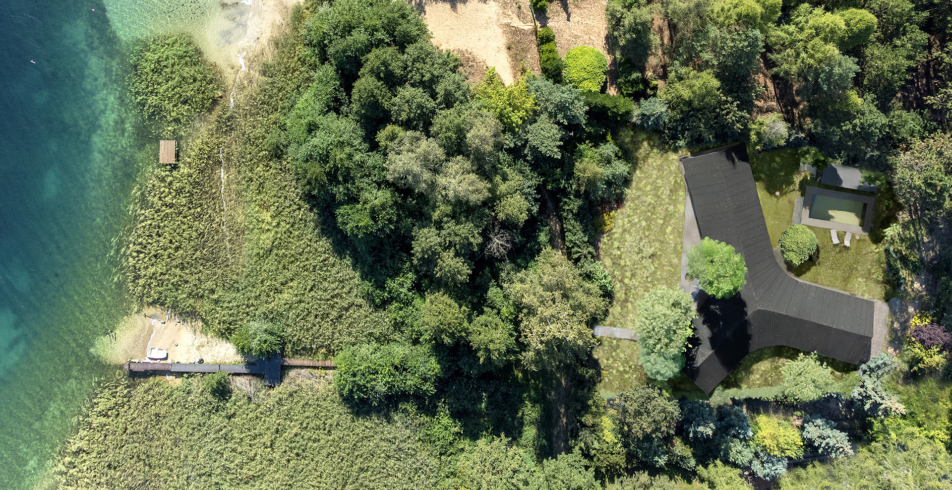 Dom Trójstronny nad jednym z malowniczych jezior Wielkopolski to wyjątkowy przykład harmonii między nowoczesną architekturą a naturalnym krajobrazem, stworzony przez doświadczonych inżynierów z Neostudio. Obiekt został zaprojektowany tak, aby w pełni wykorzystać walory zalesionej działki, na której się znajduje. Projekt ten stanowi nie tylko wyzwanie konstrukcyjne, ale także przykład przemyślanego podejścia do projektowania, które minimalizuje ingerencję w otaczający drzewostan, jednocześnie maksymalizując dostęp do zapierających dech w piersiach widoków na jezioro, lasy i okoliczne wzniesienia.