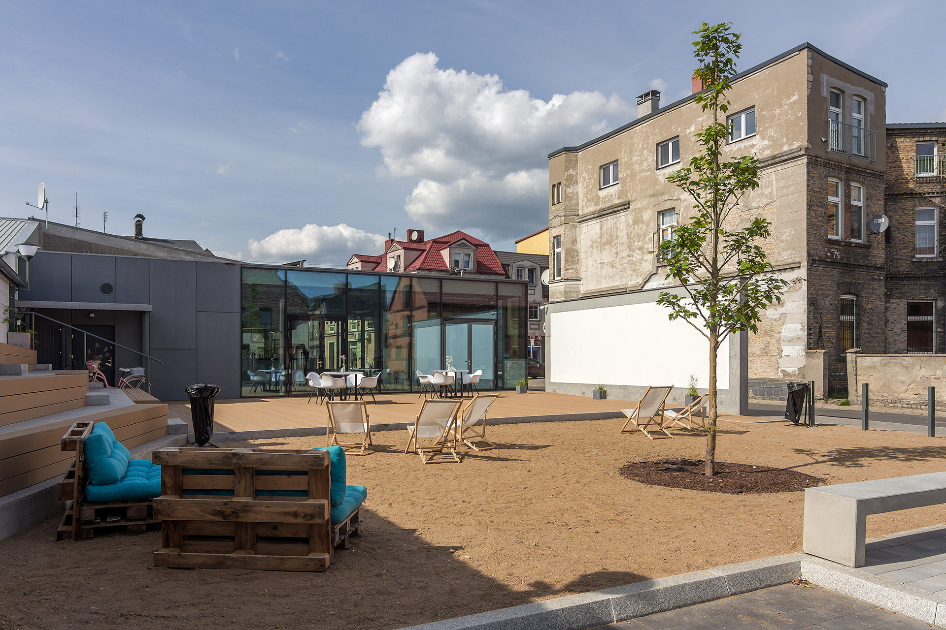 W ramach przedsięwzięć rewitalizacyjnych kwartał włączono w program inwestycji i nadano mu nazwę Skwer Usług Kultury „Przystanek Edukacja”. Inwestycja składa się z kawiarni i skweru z dziedzińcem, tarasem i przestrzenią wielofunkcyjną. Pozwala to na prowadzenie działań społeczno-kulturalnych, które w bezpośrednim sąsiedztwie mocno uczęszczanej drogi sprzyjają aktywizacji i integracji mieszkańców oraz przywróceniu funkcji lokalom gastronomicznym i usługowym w tej części miasta. Kawiarnia pełni również rolę centrum informacji miejskiej.